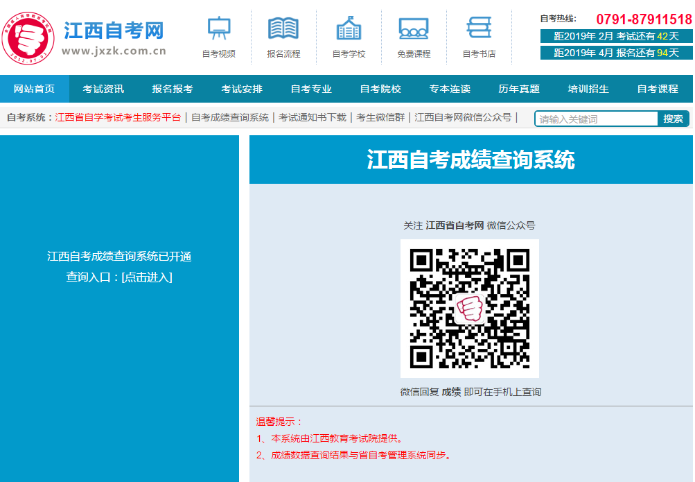 在考試完成后一個月左右登錄到江西自考網公布的查詢入口查詢自己的考試成績。